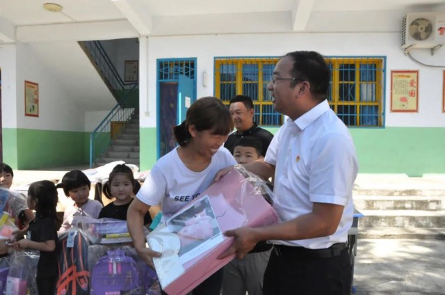 本網訊 9月3日,在新學期來臨之際,炎黃科技園聯合黨支部書 記、執行總經理楊哲帶領聯合黨支部的黨員代表到洛陽市嵩縣大章鎮趙樓村小學走訪慰問,為老師和孩子們送去開學“禮包”。
