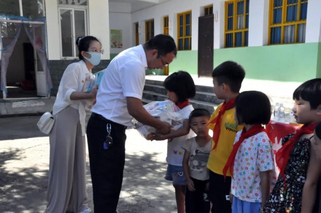 隨后,楊哲和黨員們一起將禮物發給孩子們,仔細詢問孩子們的生活、學習情況,鼓勵孩子們好好學習,快樂成長,練就過硬的本領,長大后為建設家鄉貢獻智慧和力量。