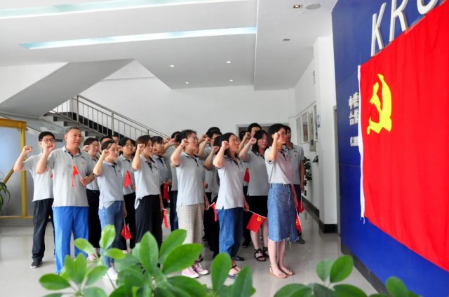 炎黃科技園聯合黨支部全體黨員在黨支部書記楊哲的帶領下,重溫入黨誓詞,深情歌唱,嘹亮的歌聲響徹云霄。