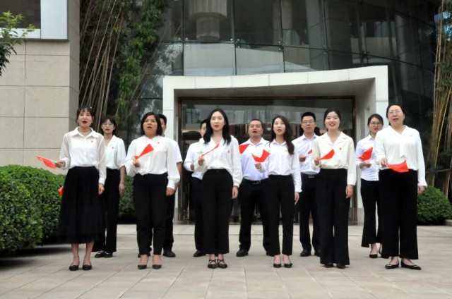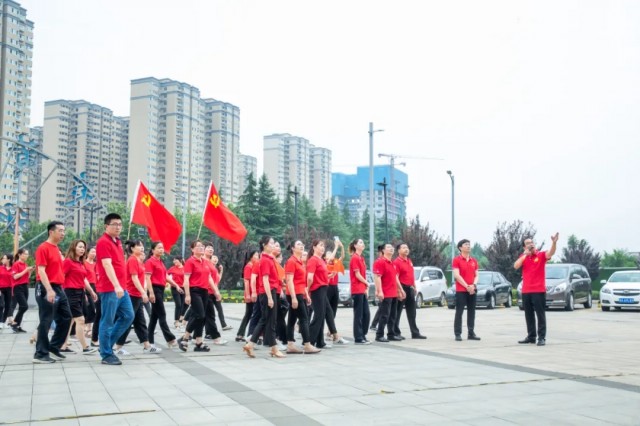 觀摩交流會結束后,參加活動的全體黨員齊聚炎黃科技園親水平臺,參加洛龍高新區(qū)“歌聲嘹亮 禮贊山河 政企聯唱 齊頌百年”獻禮建黨百年華誕主題活動合拍視頻的錄制。