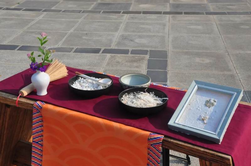 祭拜儀式結束后,傳統文化愛好者在古樸深沉、韻味悠長的古琴演奏中展示了制香、茶藝、古法造紙、香染等非遺文化和傳統技藝。