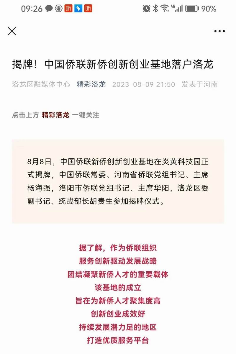 位于洛陽市洛龍區的炎黃科技園,以為僑服務為宗旨,在園區打造關心、愛心、聯心、貼心和舒心的“為僑服務站”,受到各級僑聯組織的肯定和贊揚,被中國僑聯認定為“新僑創新創業基地”。近日,中國僑聯常委、河南省僑聯黨組書記、主席楊海強到炎黃科技園調研指導,為中國僑聯新僑創新創業基地炎黃科技園揭牌,引起了廣泛的關注。
